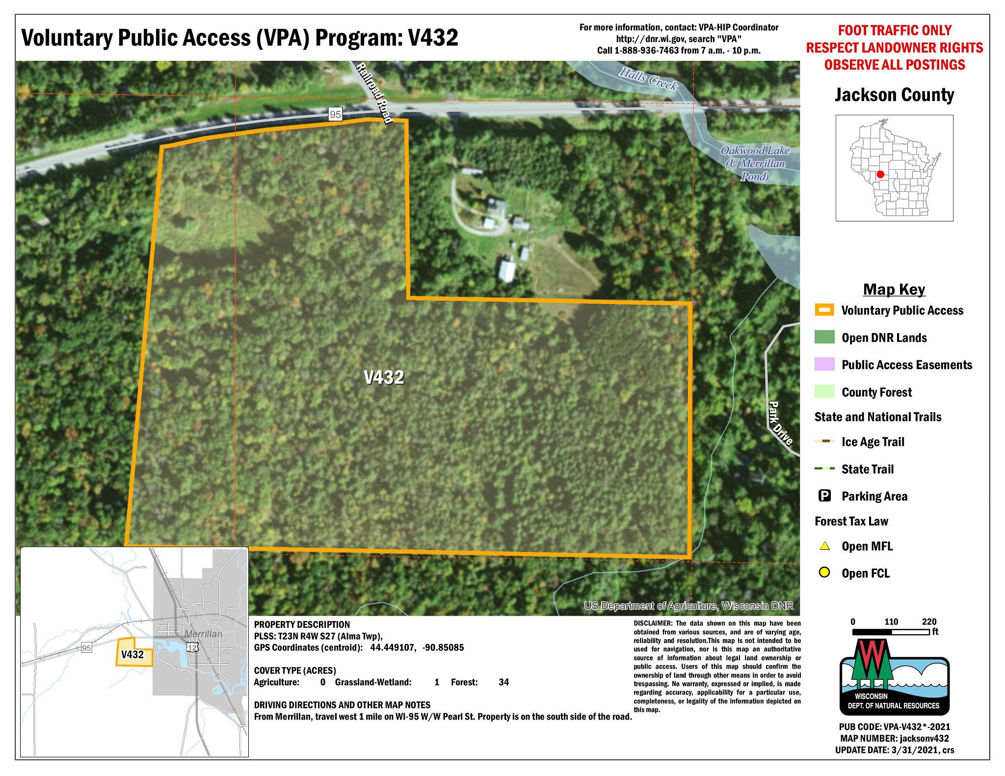 V432 | T23N R4W S27 (Alma Twp) | 35 acres. 1-acre grassland/wetland and 34 acres of forest. This property will be disenrolled on 10/26/2025. | Aerial View |